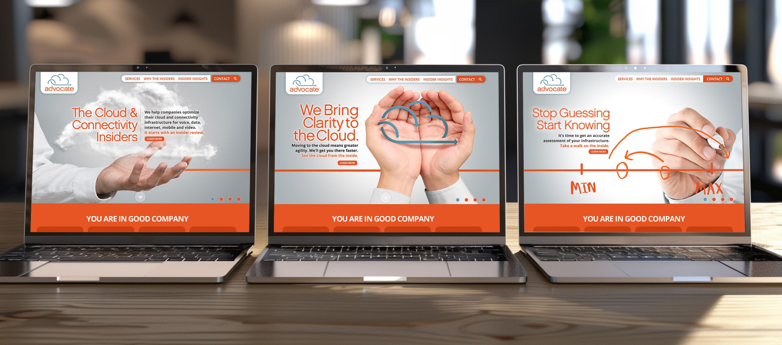 I have always understood that a brand was more than just a logo — it’s a complete story that needs to be told cohesively across every touchpoint. When Advocate Insiders, an IT consulting firm specializing in cloud, connectivity, and unified communications, rebranded in 2013, they needed a visual identity that would match their newly refined voice. After working with our strategic partner, PitchMaps™, to establish their messaging and tagline — “The Cloud and Connectivity Insiders” — they turned to my agency, Atomic Wash, to bring that brand to life.